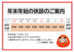 いつもご愛顧いただき誠にありがとうございます。 年末年始の休業日のお知らせです。 ご確認よろしくお願い致します。